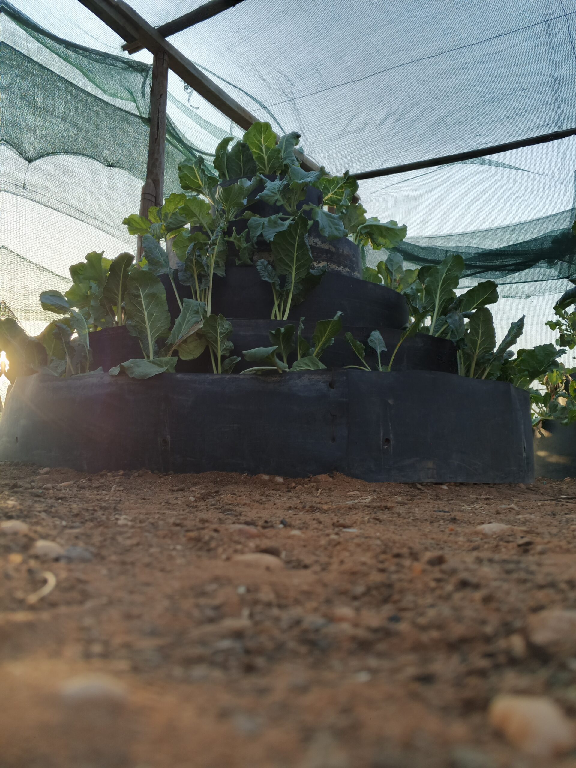 A: It’s a space-efficient gardening system that stacks soil in a cone shape for growing multiple layers of crops.
